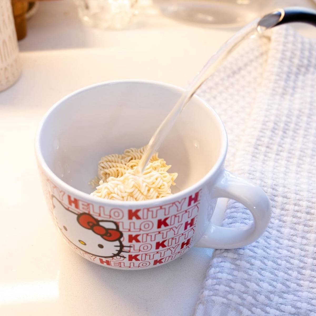 Introducing the Sanrio Hello Kitty 24 oz Ceramic Soup Mug With Vented Lid - Red, the perfect addition to your kitchen essentials. This adorable and versatile mug is not only great for soups but also perfect for ice cream, cereal, oatmeal, and so much more. Made from high-quality ceramic, this soup mug is built to last with its durable construction. The vibrant red color and charming Hello Kitty design will bring a touch of cuteness to your dining experience. Whether you're enjoying a cozy soup night or indulging in a sweet treat, this mug will add a playful element to your meals. With a generous capacity of 24 ounces, this mug is large enough to satisfy even the heartiest appetites. The vented lid helps to keep your food warm and prevents any messy spills while you're on the go. Plus, the wide handle ensures a comfortable grip for easy transport and drinking. Not only is this mug functional, but it also makes for a thoughtful and adorable gift for any Hello Kitty fan. Upgrade your kitchenware collection with the Sanrio Hello Kitty 24 oz Ceramic Soup Mug With Vented Lid - Red and brighten up your mealtimes!