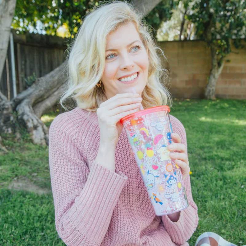Enjoy your favorite beverage in style with the Sanrio Hello Kitty and Friends Icons 32 oz Confetti Carnival Cup - Red! This fun and functional cold cup is perfect for any occasion, whether at home, in the office, or during lively parties. Featuring an exclusive design that showcases Hello Kitty and her friends, this vibrant tumbler adds a sprinkle of joy to your everyday adventures. With its cheerful confetti motif and beloved characters like My Melody and Cinnamoroll, each sip becomes a delightful experience. This generously sized cup holds approximately 32 ounces, making it an ideal companion for keeping your favorite drinks on hand wherever you go. Crafted from high-quality, BPA-free plastic, it includes a screw-top lid and a reusable straw for your convenience, ensuring you stay hydrated in cute style. Please note, for the best care, hand-washing is recommended as it is not suitable for the dishwasher or microwave.