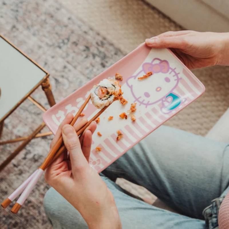 Sanrio Hello Kitty Pink Ceramic Sushi Set With Sauce Bowl and Chopsticks (3 Piece)