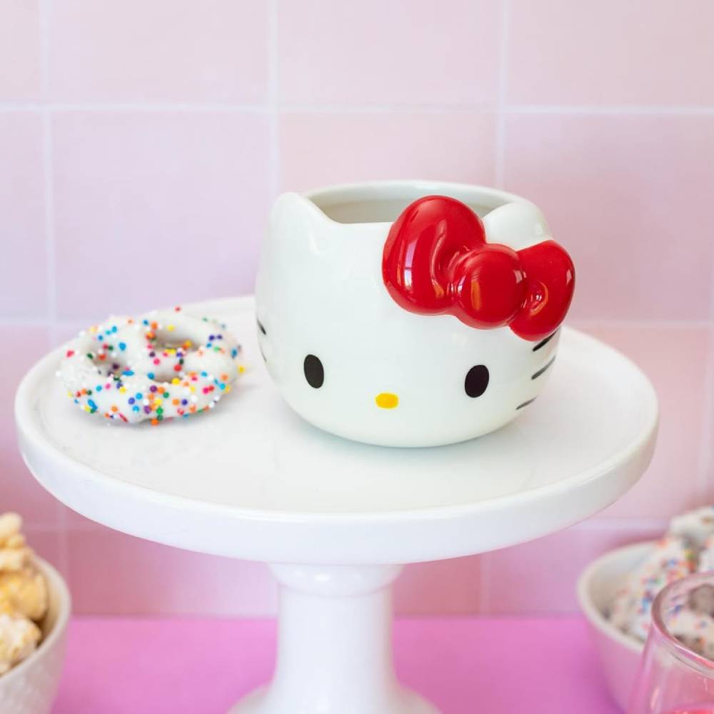 Enjoy your favorite beverage in style with the Sanrio Hello Kitty Red Bow 3 oz Sculpted Ceramic Mini Mug - White/Red! This delightful mini cup combines fun and functionality, making it ideal for use around the house, at the office, or even during parties. Start your day off with a sweet smile as you sip from this exclusive mini mug featuring the one and only Hello Kitty. Every supercute sip you take is sure to make an endearing statement. This charming mug not only holds your preferred beverage but also adds a playful touch to your drinkware collection.
