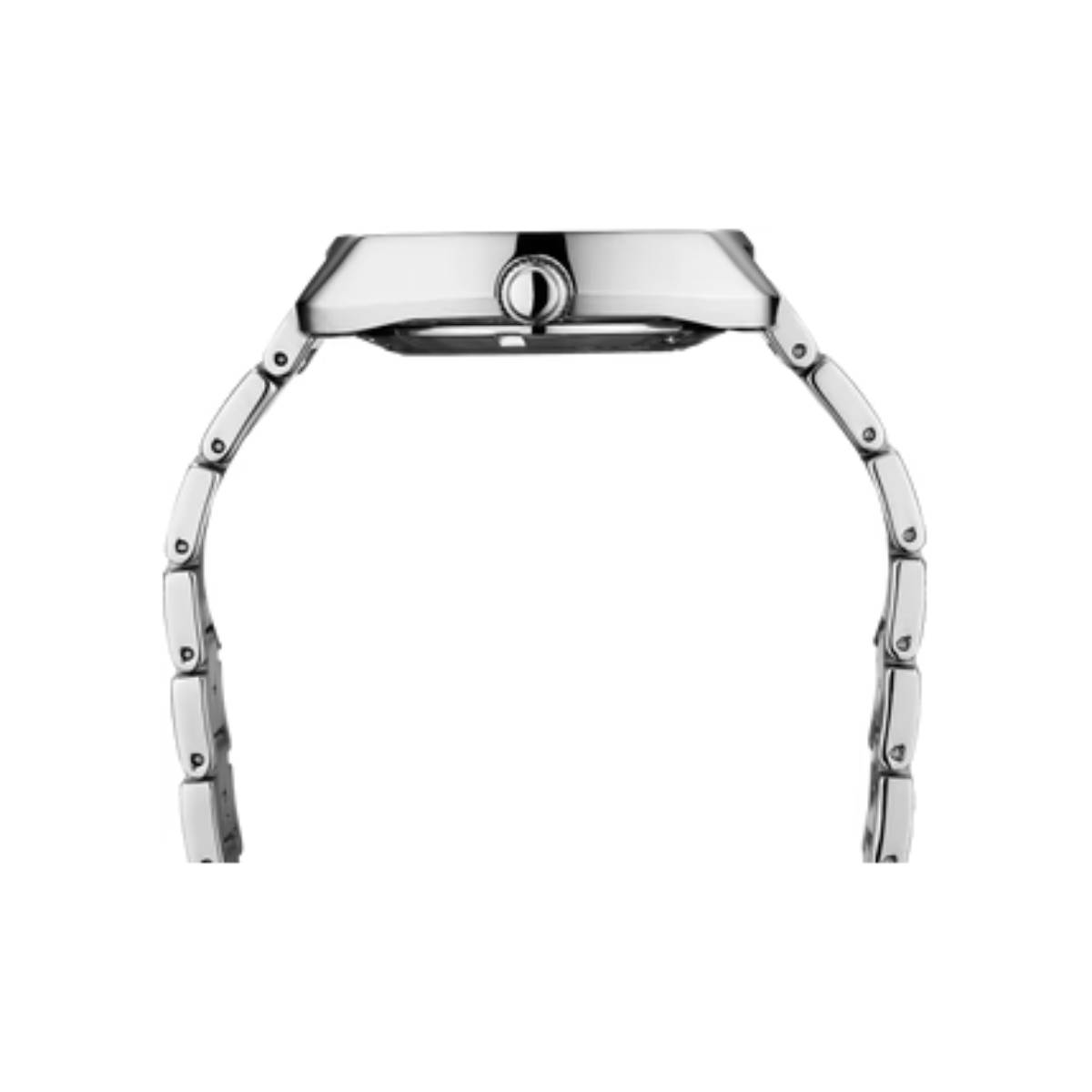- Elegant rectangular stainless steel case and bracelet for a sophisticated look.
