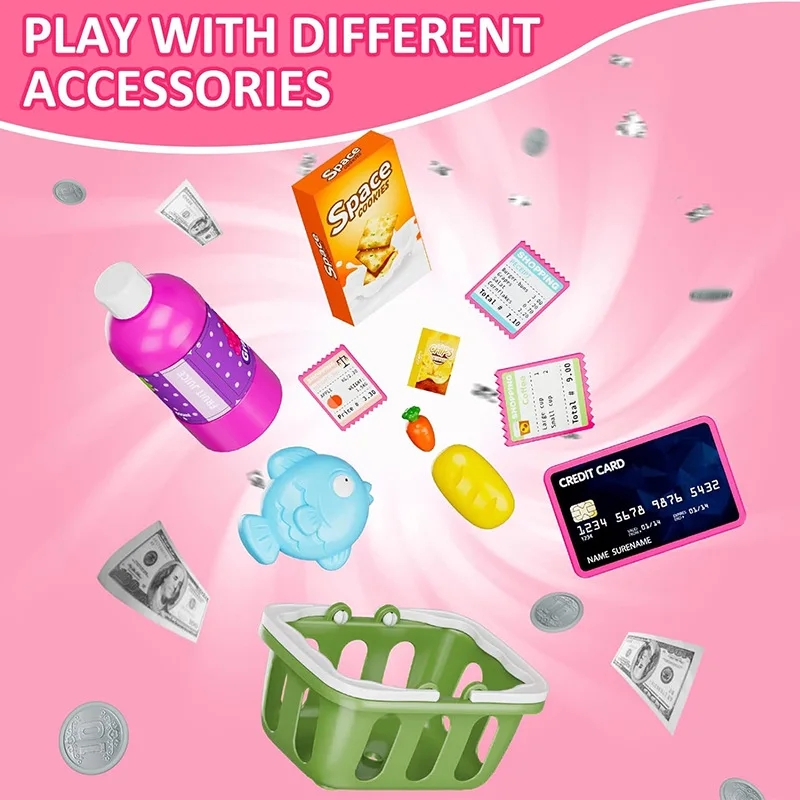 Shopping Cash Register Playset with Real Calculator, Pretend Play Store, Learning Toy, Christmas/Halloween/New Year Gift