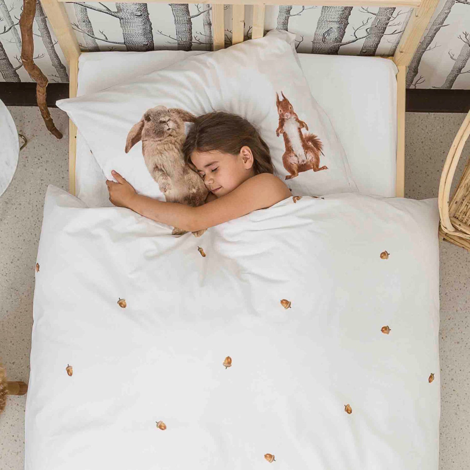 With these two furry friends by your side, you will never feel alone in bed. Or hungry. Cause they have collected enough acorns for you to get through a long winter sleep. Isn’t that sweet? So go ahead and rest your head between them. Sleep well.