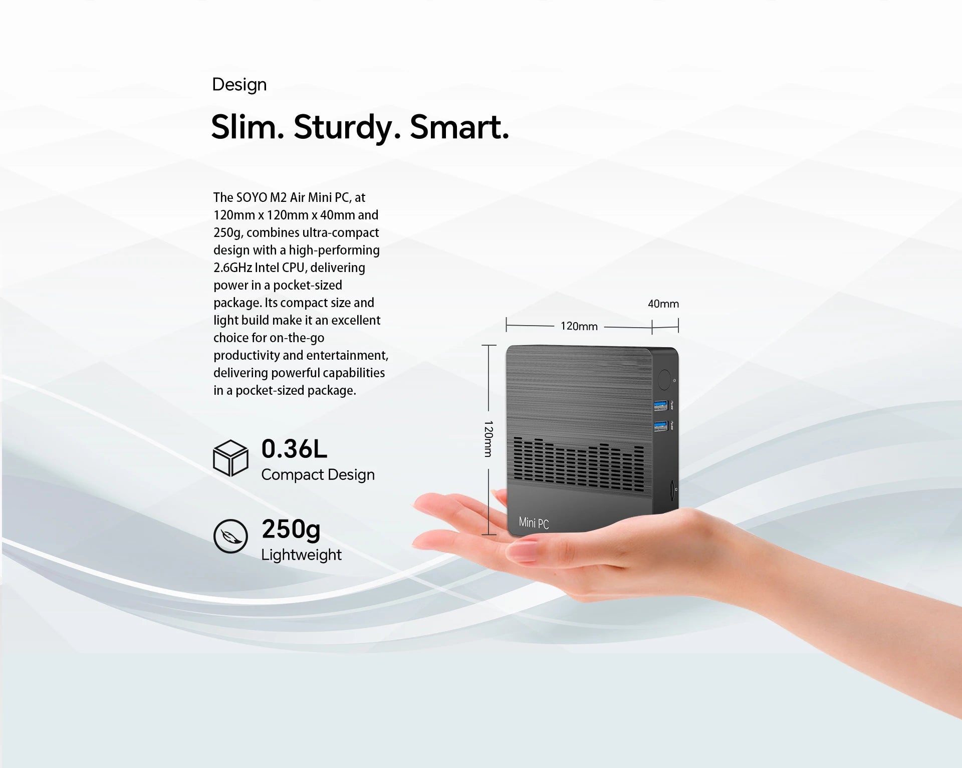 SOYO M2 Air Mini PC: 6GB RAM, 128GB EMMC, Intel N4000, Windows 11 Pro - Compact for Home, Business & Gaming