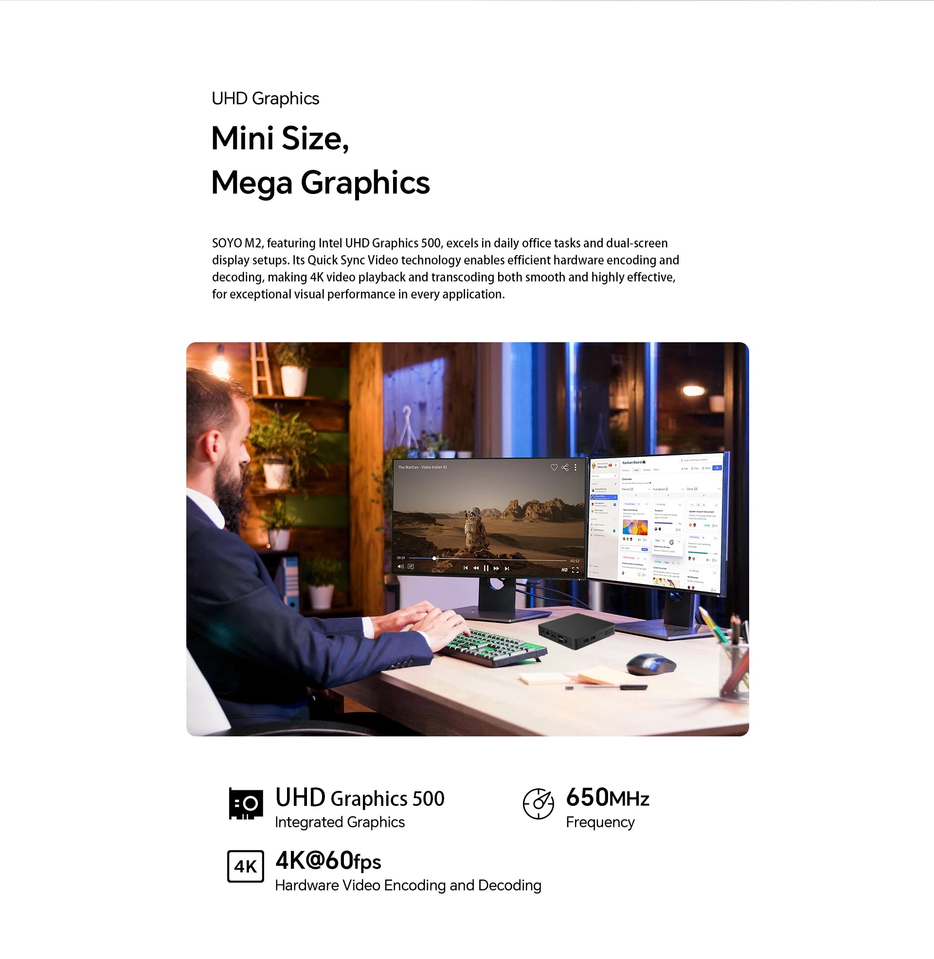 SOYO M2 Mini PC with 6GB RAM, 64GB EMMC, Intel N3350