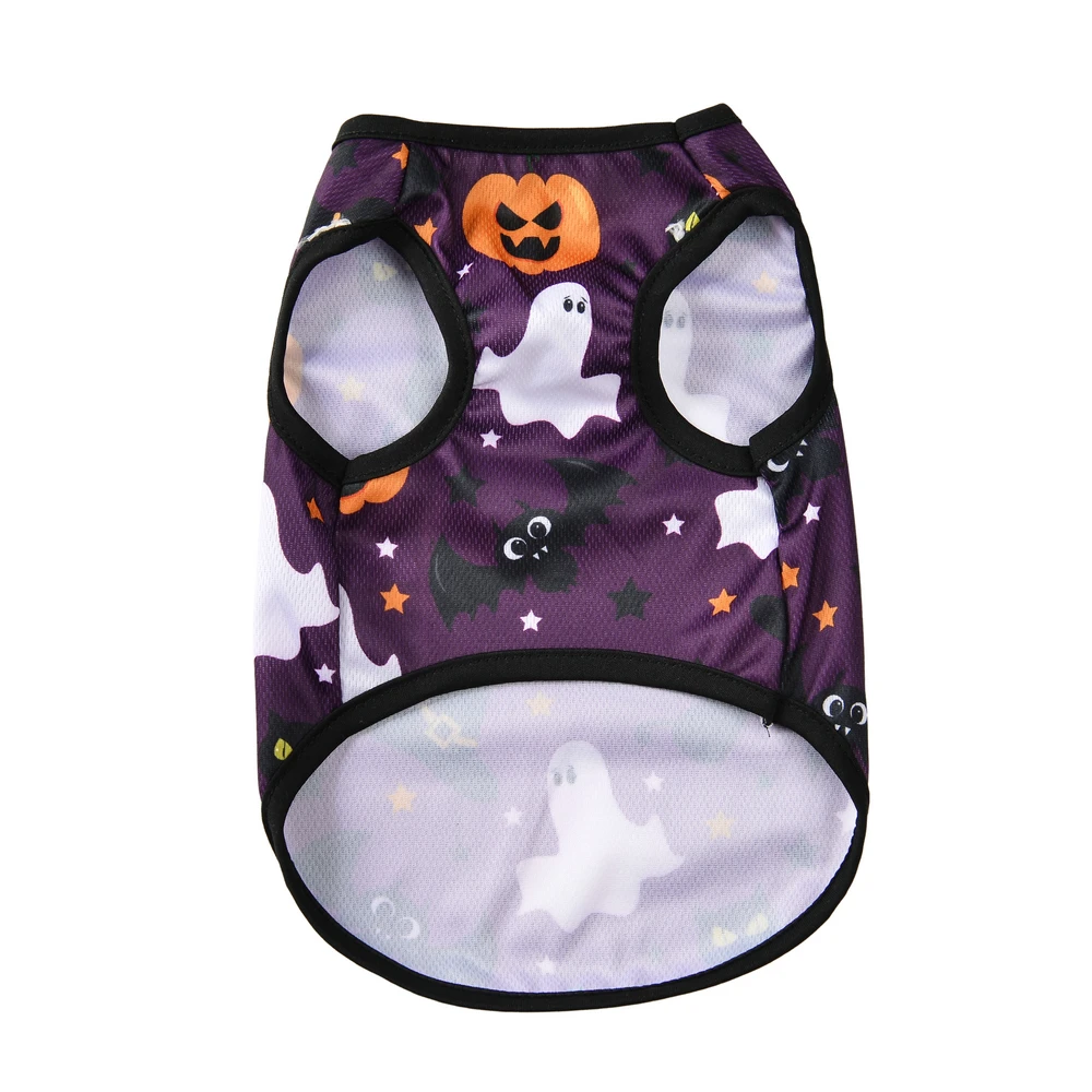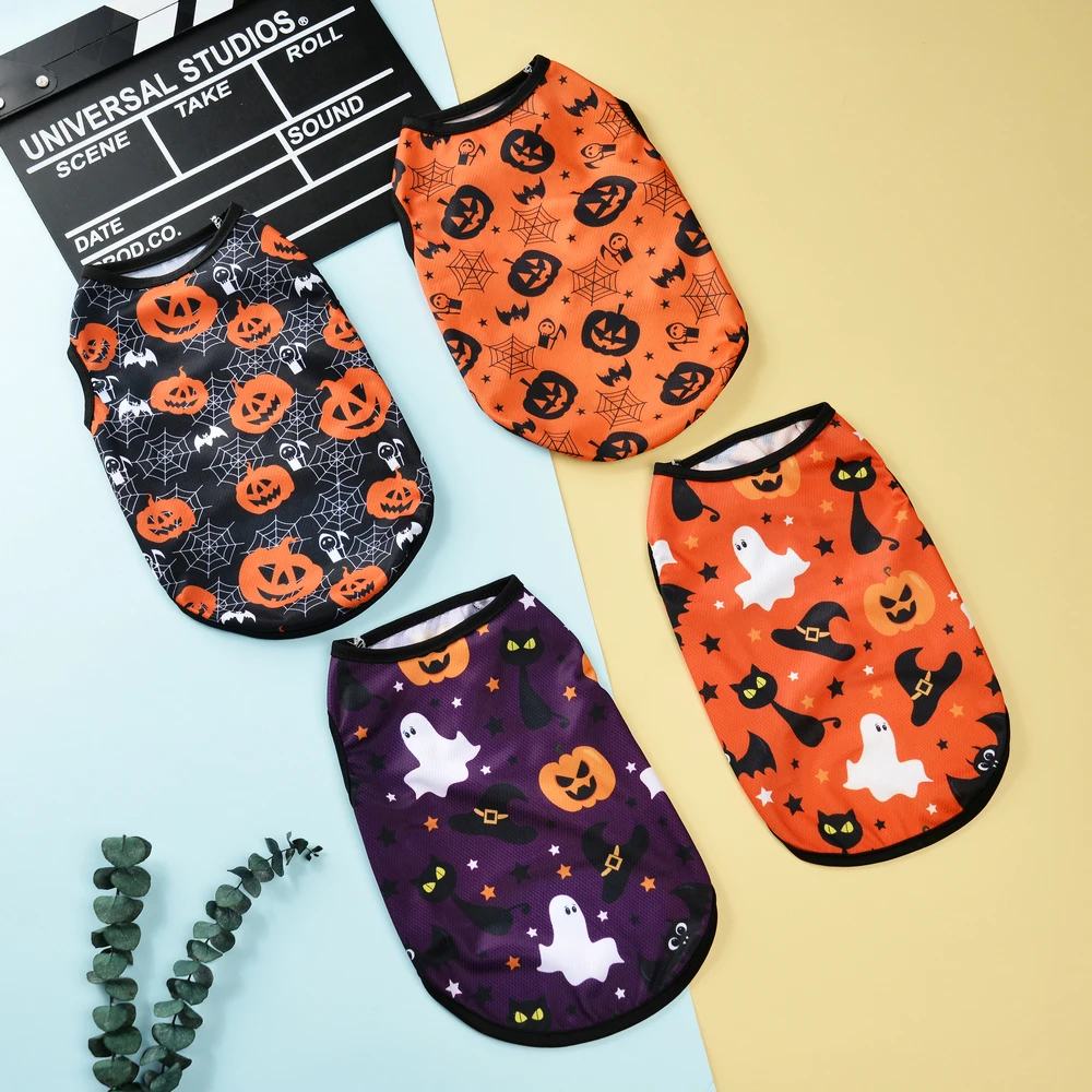 Summer Breathable Dog T-shirt For Small Medium Dogs Cats Soft Halloween Print Pet Clothes Schnauzer Yorkshire Pug Vest Clothing