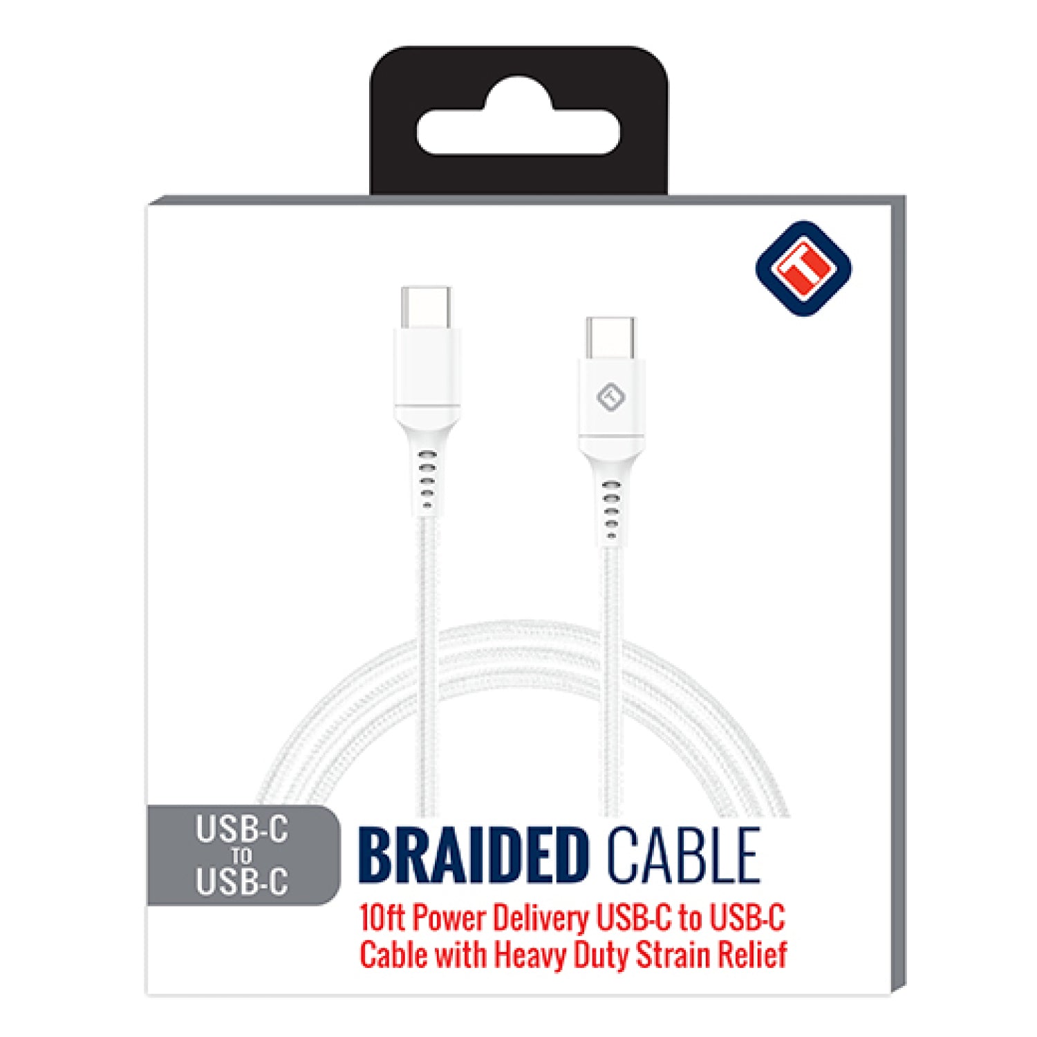 Tekya 10 ft USB-C to USB-C 3.0 Braided Cable - White