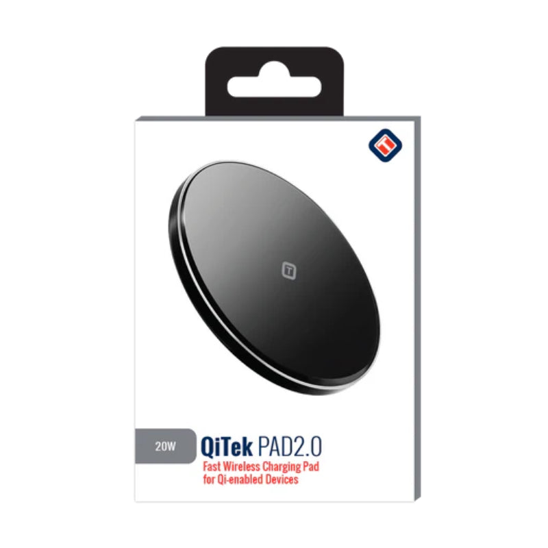 The QiTek Pad2.0 offers up to 20W fast wireless charging for all Qi-enabled devices, combining speed with style. Its sleek black glass finish and ultra-thin profile make it a modern addition to any setup. Designed for versatility, it supports multiple input options and comes with a 6ft USB-C cable for flexible use. The non-slip grip bottom ensures your device stays securely in place during charging. A subtle LED indicator provides real-time charging status and turns off when your device is fully charged for a distraction-free experience.