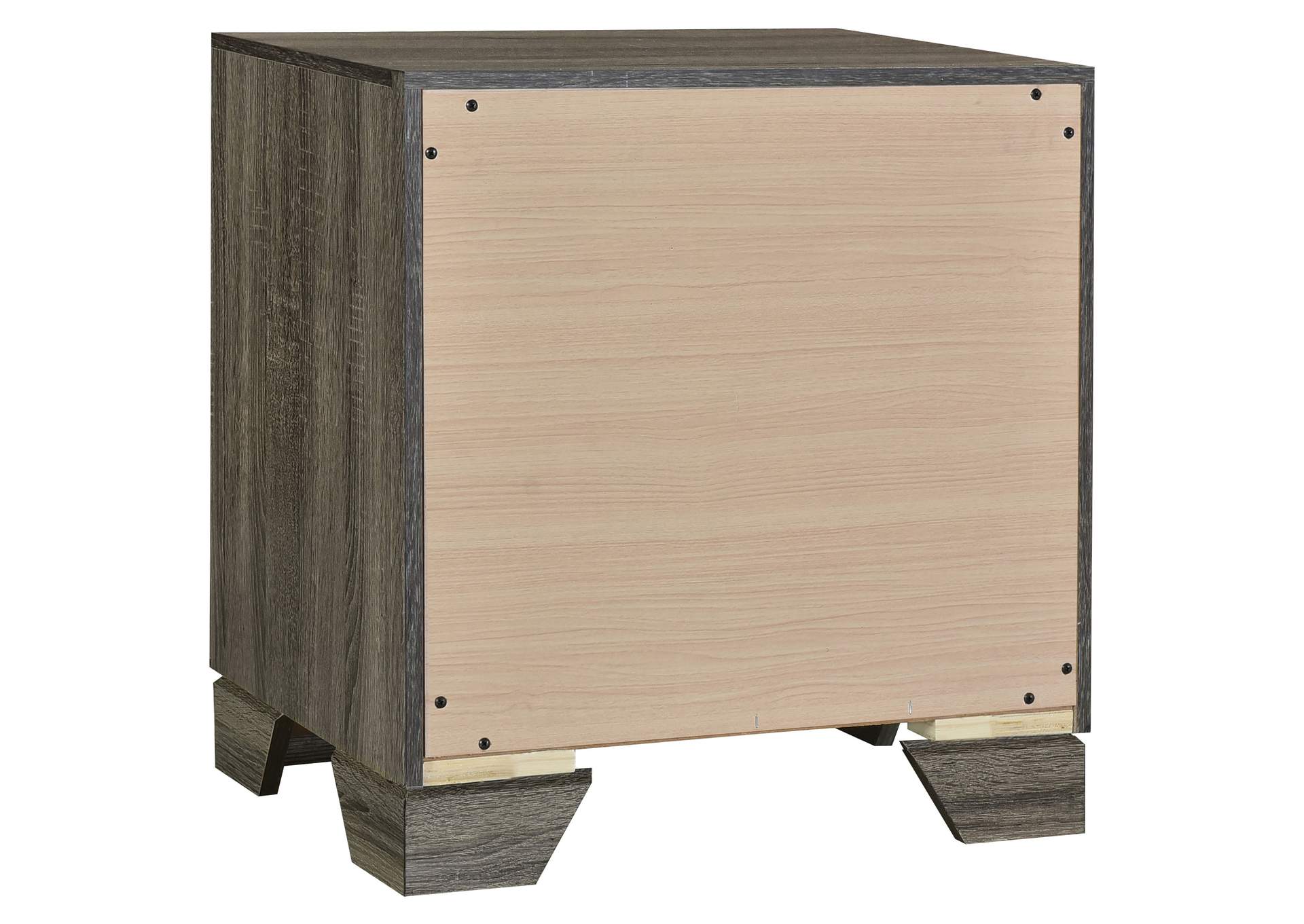 The Tina 4PC Queen Bedroom Set allows you to create your ideal bedroom atmosphere with its transitional style. Engineered wood construction and durable laminate surfaces provide a sleek, modern look with a brown oak wood grain finish. The set includes a tall, plush headboard with foam padding and neutral-toned upholstery for ultimate comfort, as well as a low footboard and rails for an open and airy feel in any size bedroom. Storage pieces add practicality with ample drawer space and roomy tops for organization and personal touches.