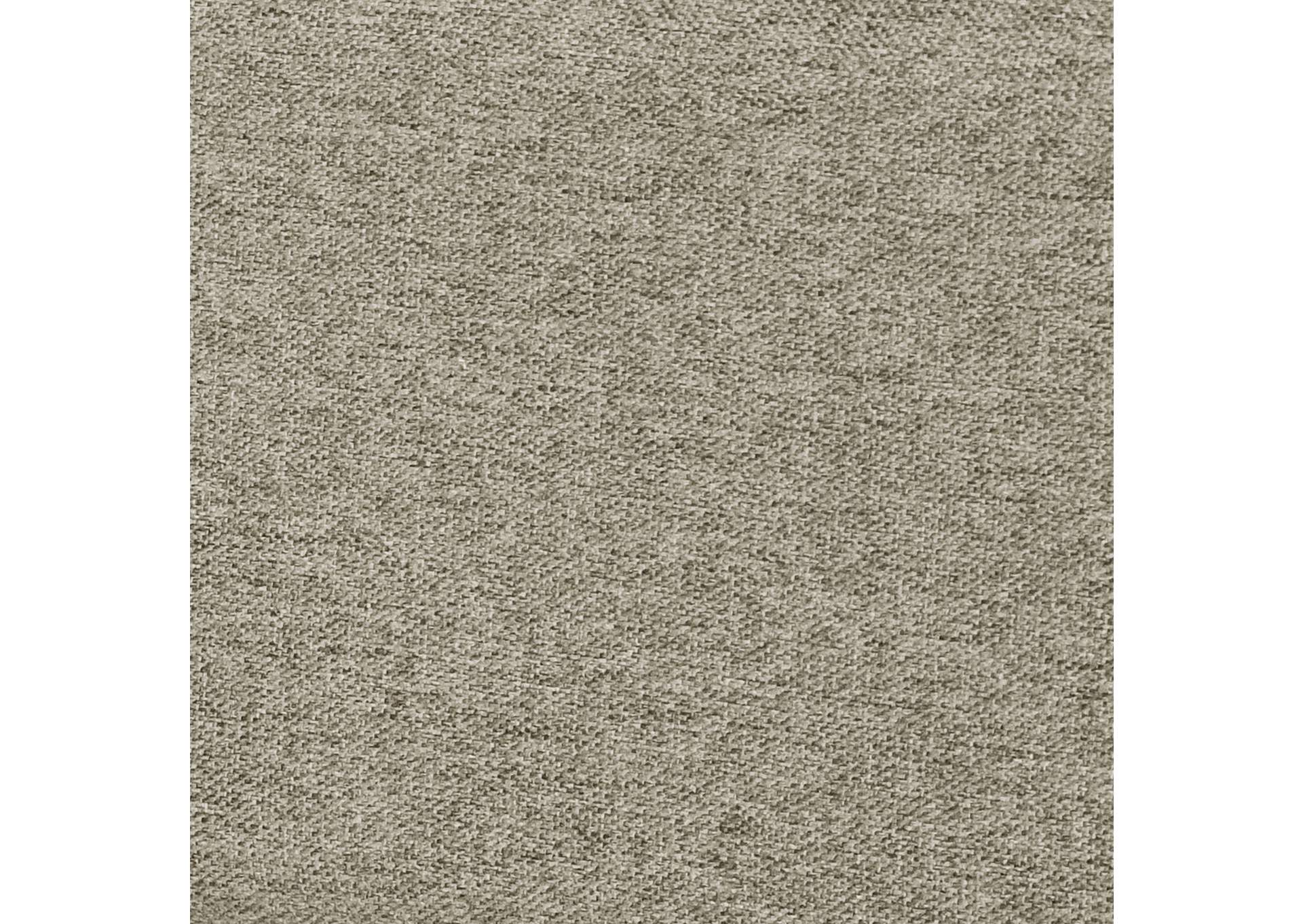 - Padded headboard is augmented with foam and covered in tan fabric for an appealing neutral look