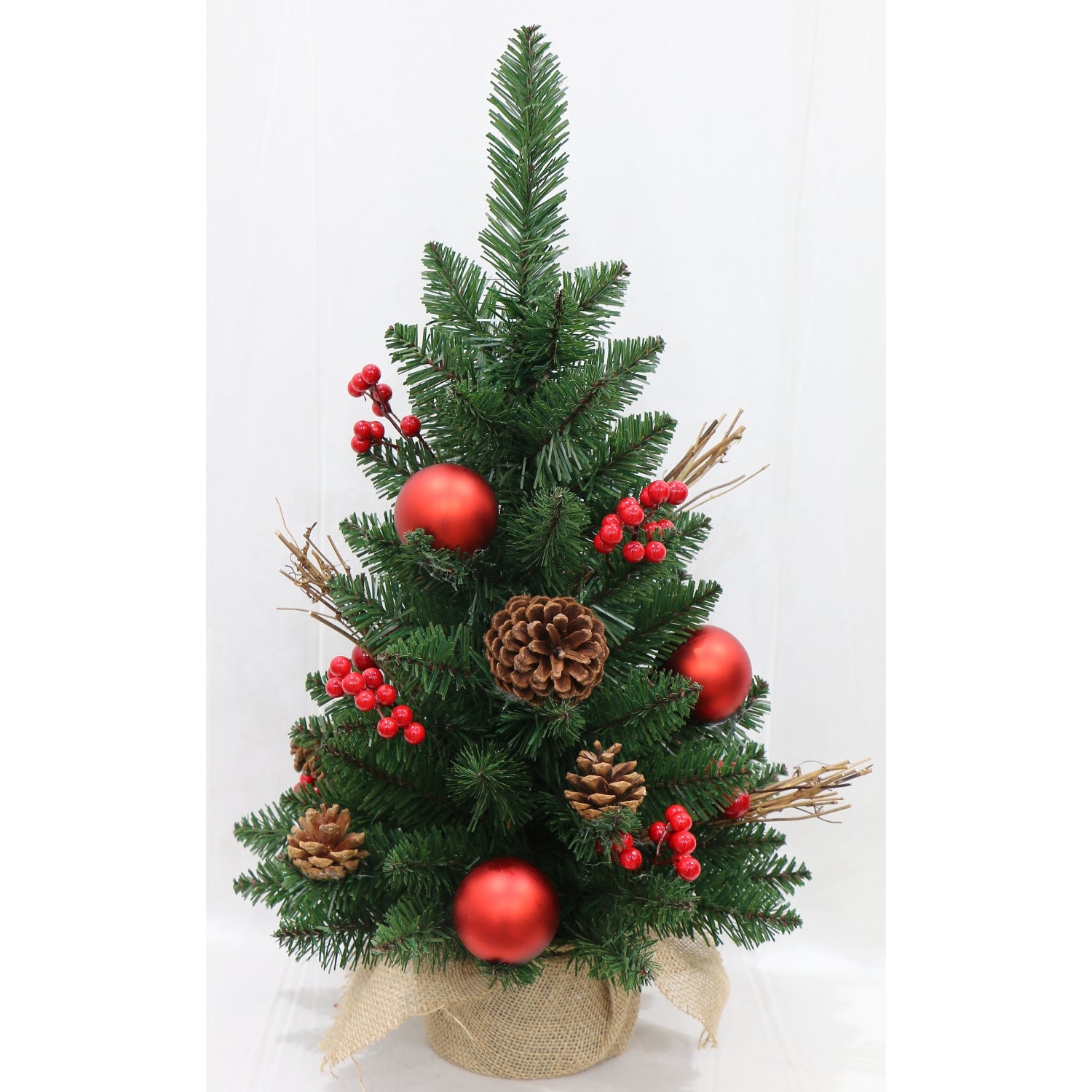 TOI 23" Pre-Lit Linen Christmas Tree with Red Ball, Pine Cone & Cherry Twigs