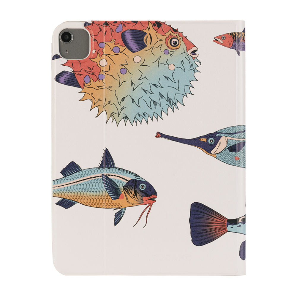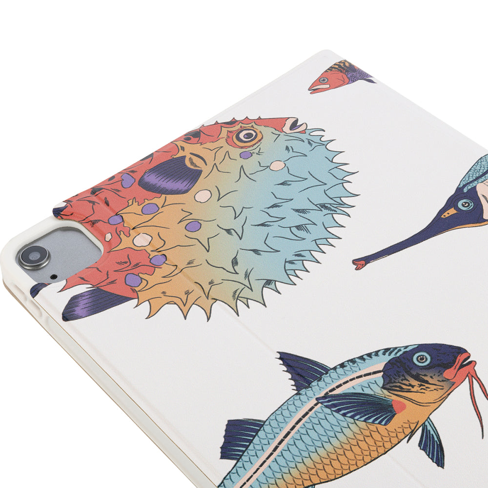 The Tucano Up Schizzo Folio Case for 11" Apple iPad Air (M2) - White is a perfect blend of style and functionality, designed for the modern user who values both aesthetics and protection. This folio case features an artistic graphic design that showcases vibrant fish motifs, making it not only a protective accessory but also a statement piece. The semi-rigid back shell ensures that your device is shielded from everyday impacts, while the scratch-resistant interior maintains the pristine condition of your iPad. With a front cover that effortlessly folds into a multi-position stand, you can enjoy versatile viewing and typing angles for work or entertainment. Plus, a thoughtfully designed camera cutout allows for easy access to capture stunning photos and videos without removing the case. The internal compartment securely holds your Tucano Pencil or Apple Pencil, ensuring your stylus is always at hand for quick sketches or notes.