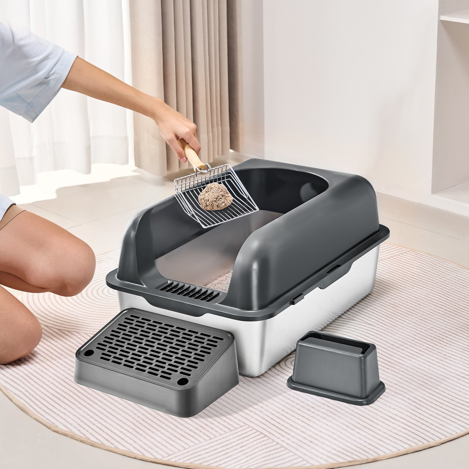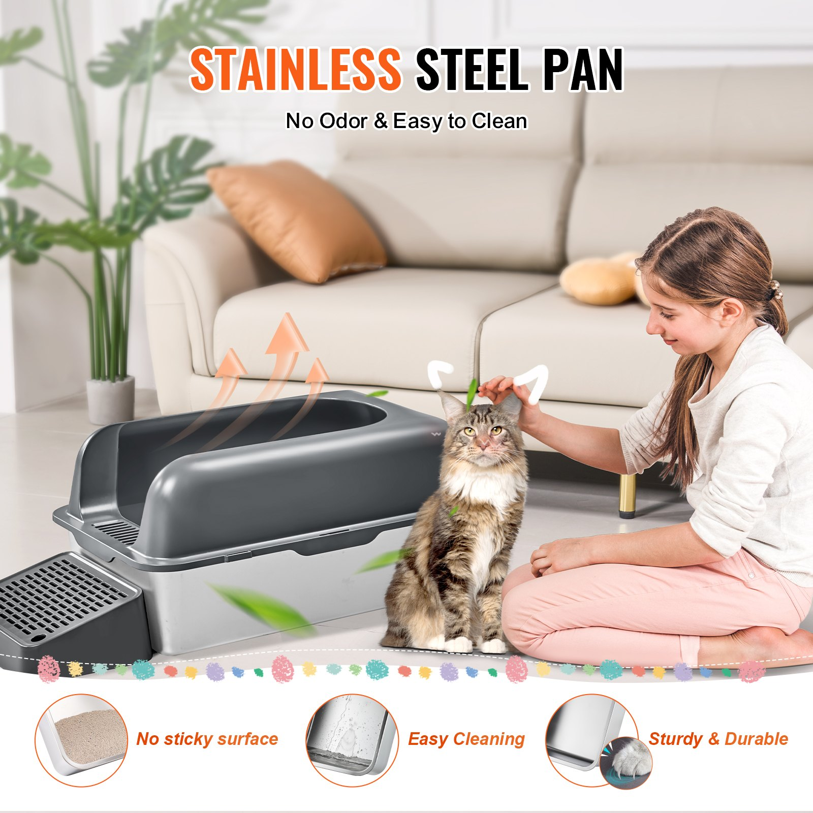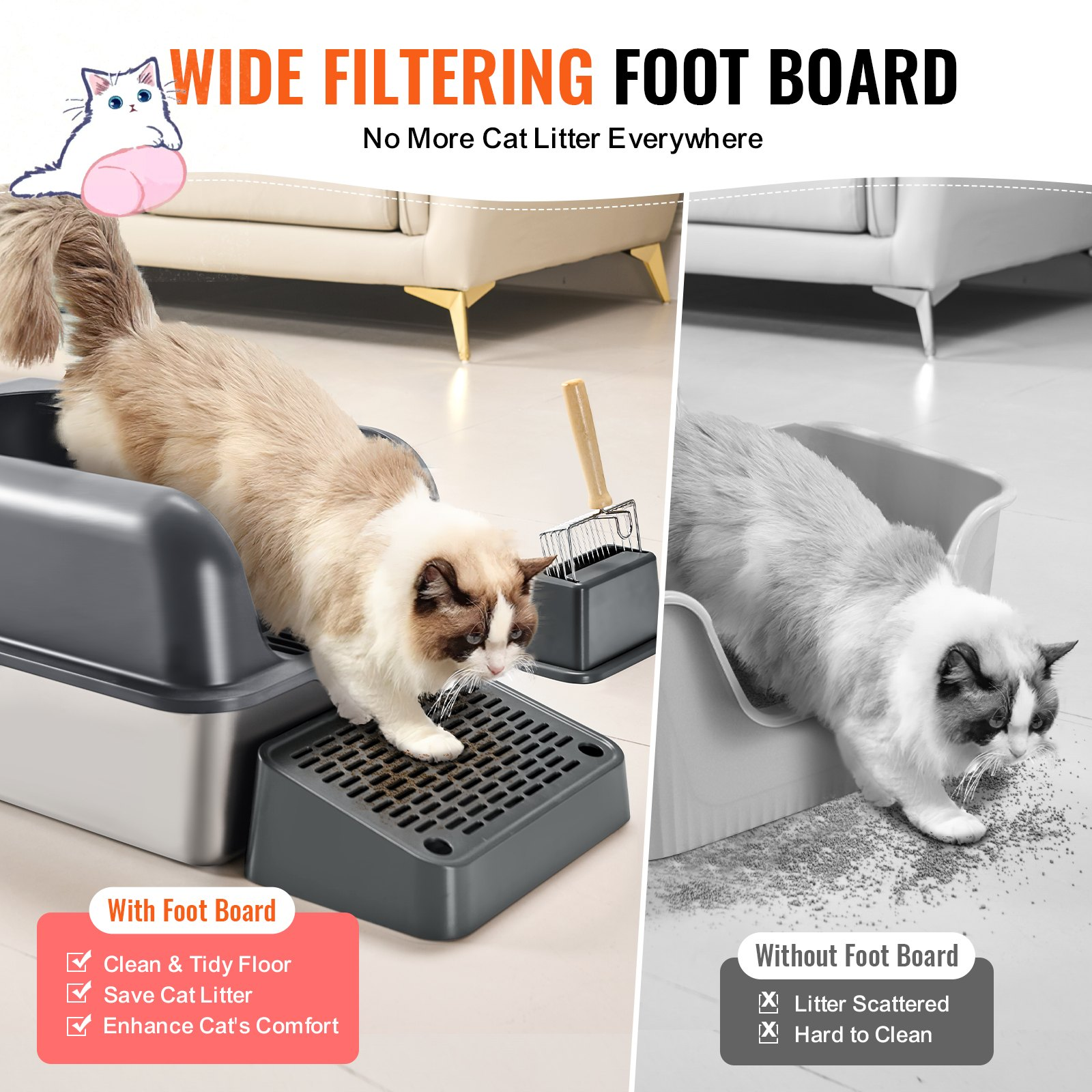 VEVOR 6 in Deep Cat Litter Box Odor-Free Litter Box with Filtering Foot Board
