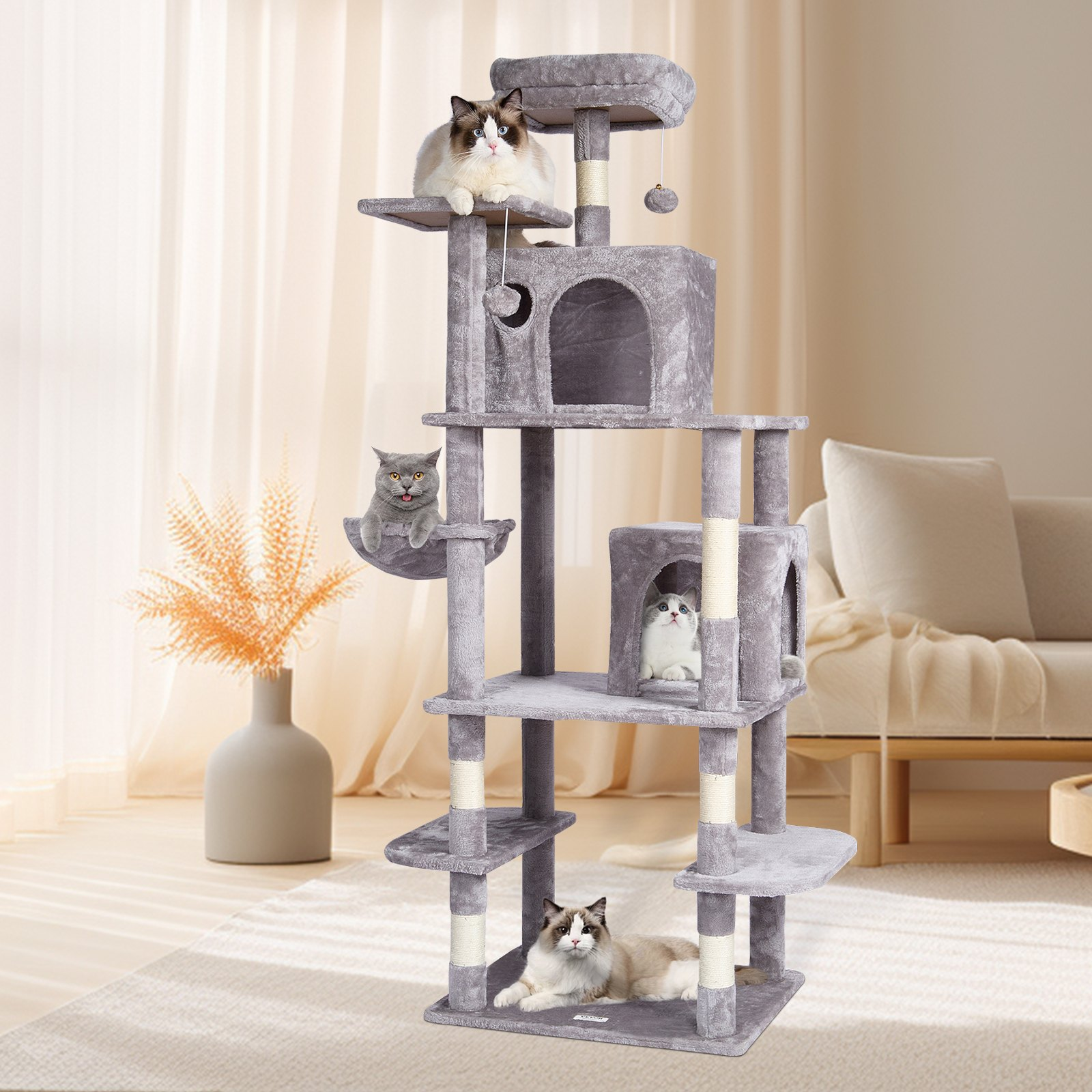 VEVOR Cat Tree 68.5" Cat Tower with Cat Condos Sisal Scratching Post Light Grey