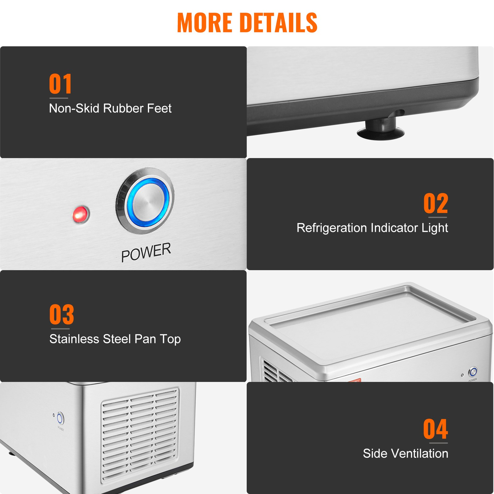 Fried Ice Cream Roll Machine, 12.6" x 8.5" Stir-Fried Ice Cream Pan, Stainless Steel Rolled Ice Cream Maker with Compressor and 2 Scrapers, for Making Ice Cream, Frozen Yogurt, Ice Cream Rolls