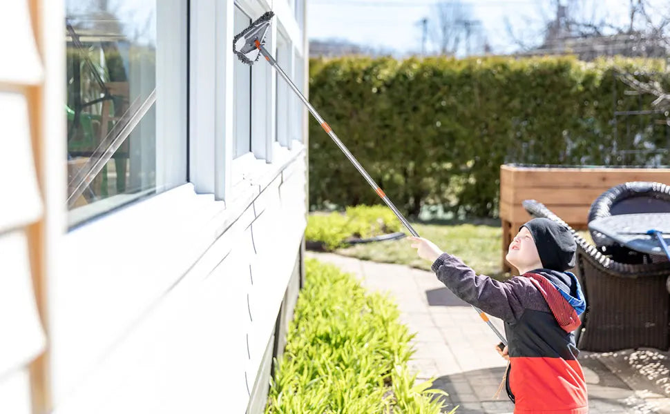 Experience the ultimate cleaning solution with our Wall Mop with Long Handle 360 Rotating Triangle Microfiber Wall Cleaning Mop. Designed for efficiency and versatility, this mop is perfect for both wet and dry cleaning tasks. Its innovative triangular head rotates 360 degrees, allowing you to effortlessly reach every corner, including hard-to-clean spaces like baseboards and the areas behind furniture. The adjustable stainless steel handle extends from 25 to 85 inches, enabling you to customize it to your preferred length for maximum comfort and reach. With six reusable mop pads included, you can tackle any mess, whether it's dusting or deep cleaning. Say goodbye to stubborn dirt and hello to a spotless home with our eco-friendly wall mop. Its durable construction ensures longevity, while its strong absorption capabilities make cleaning a breeze. Upgrade your cleaning routine today! Product Highlights: Strong & Durable: Premium hollow stainless steel extension rod for maximum strength. Adjustable Handle Length: Customize your mop length from 25 to 85 inches. 360 Rotating Head: Effortlessly cleans corners and hard-to-reach areas. Dry and Wet Use: Comes with multiple mop pads for versatile cleaning. Eco-Friendly: Made from sustainable materials, promoting a cleaner environment.