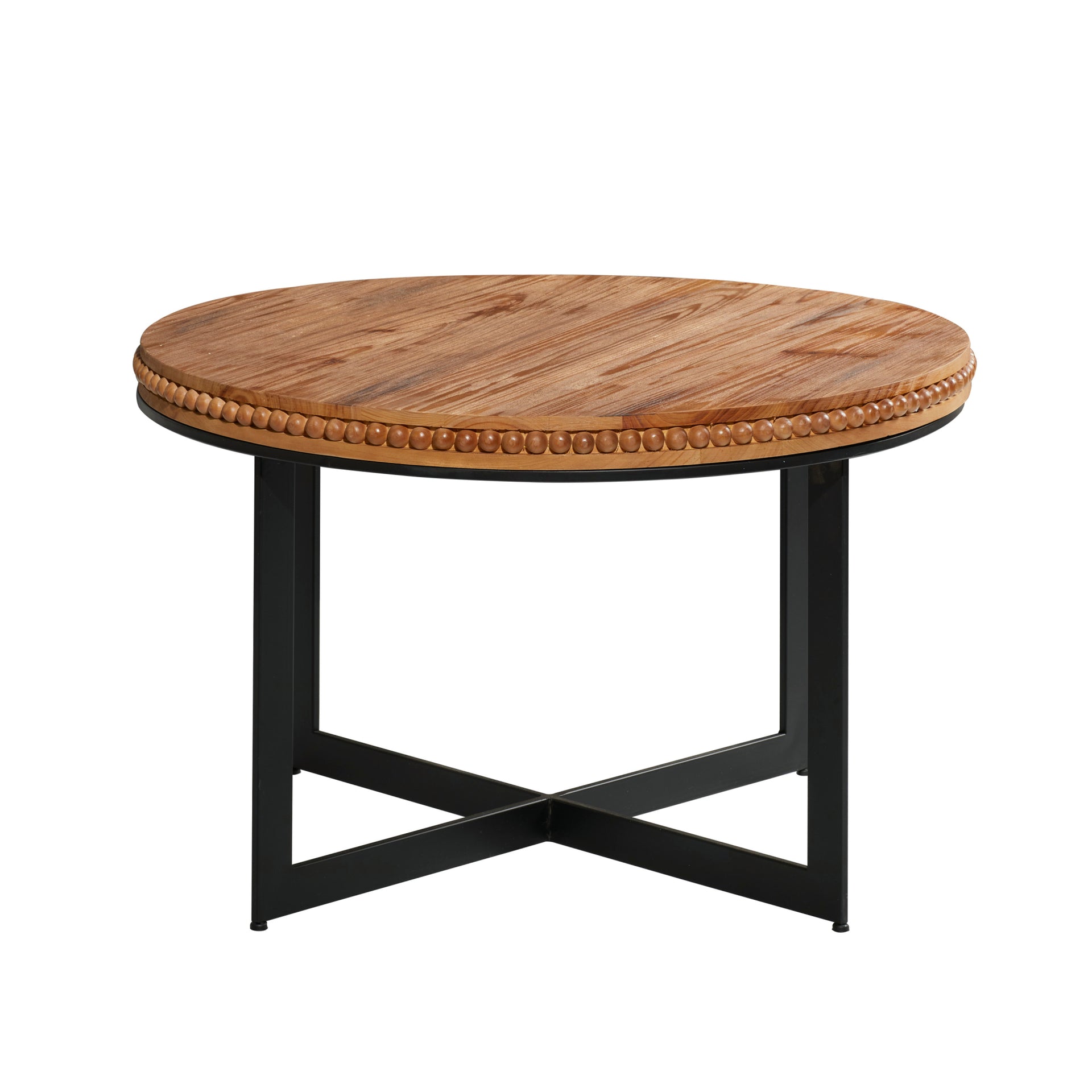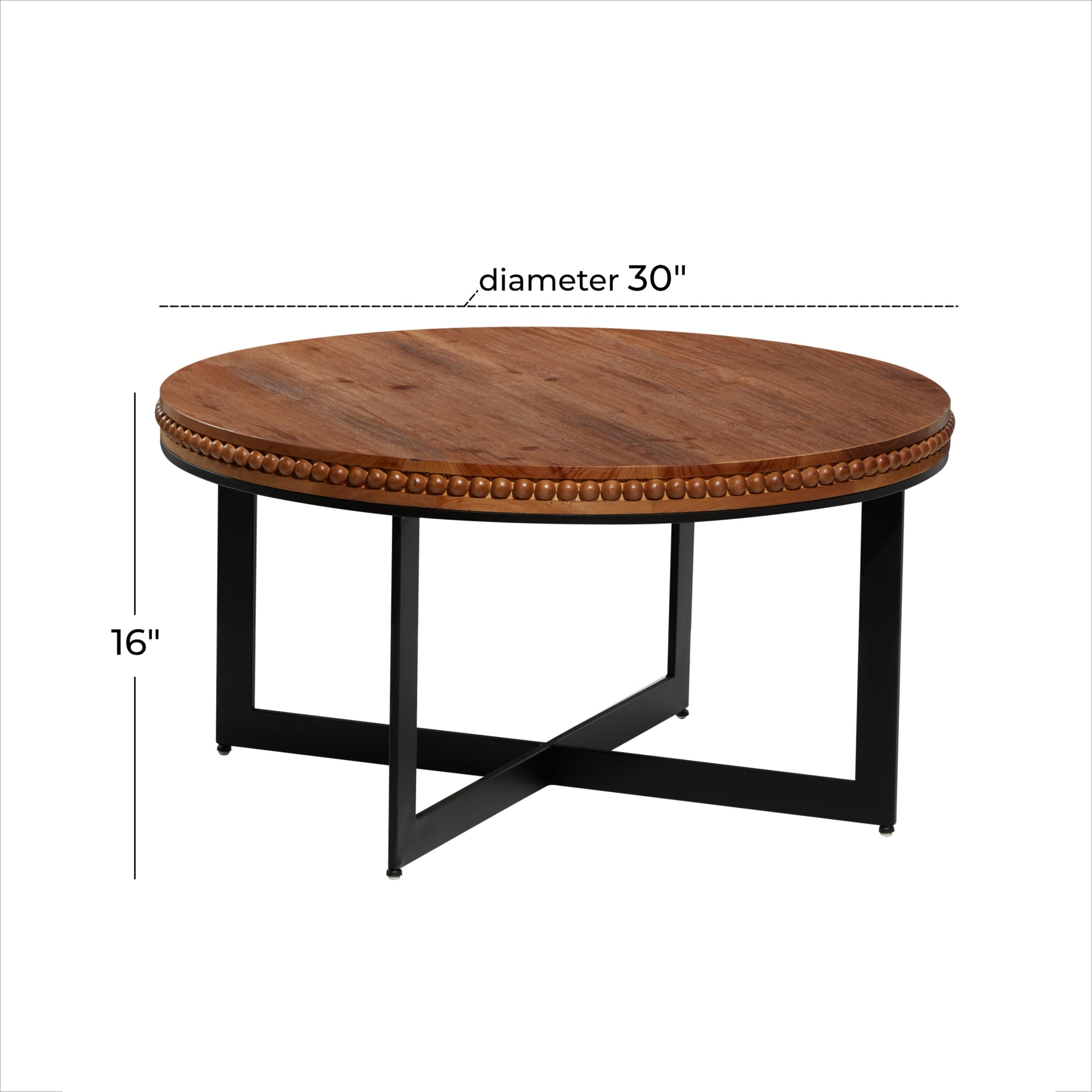 Your eclectic-inspired living space will not be complete without the Wood Industrial Coffee Table by UMA Enterprises. This stunning piece combines rustic charm and modern design, featuring a round shape that fits perfectly in any setting, whether it's a cozy living room or a stylish den. The table's natural brown wood finish adds warmth and character, while the unique wooden beaded details around its edges provide a touch of artisanal craftsmanship. This versatile coffee table is not only functional but also serves as a striking centerpiece, making it an ideal gathering spot for family and friends, or a place to showcase your favorite decor items.